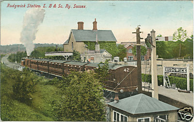 The project began as The Horsham to Guildford Direct Railway Company (H&GDRC), but the London, Brighton and South Coast Railway Company (LB&SCR) obtained the right to run the traffic over the line in return for not opposing it, and took over the company in 1862. The railway came to Rudgwick in 1865, and closed in 1965, just weeks short of its centenery. it was a lifeline for farmers, and also for potential landowners who soon built  or gentrified existing country properties, many shown elsewhere in the Gallery. Coal was a particular commodity, with a large coalyard business soon established next door by Edward Botting, succeeded later by William Francis.