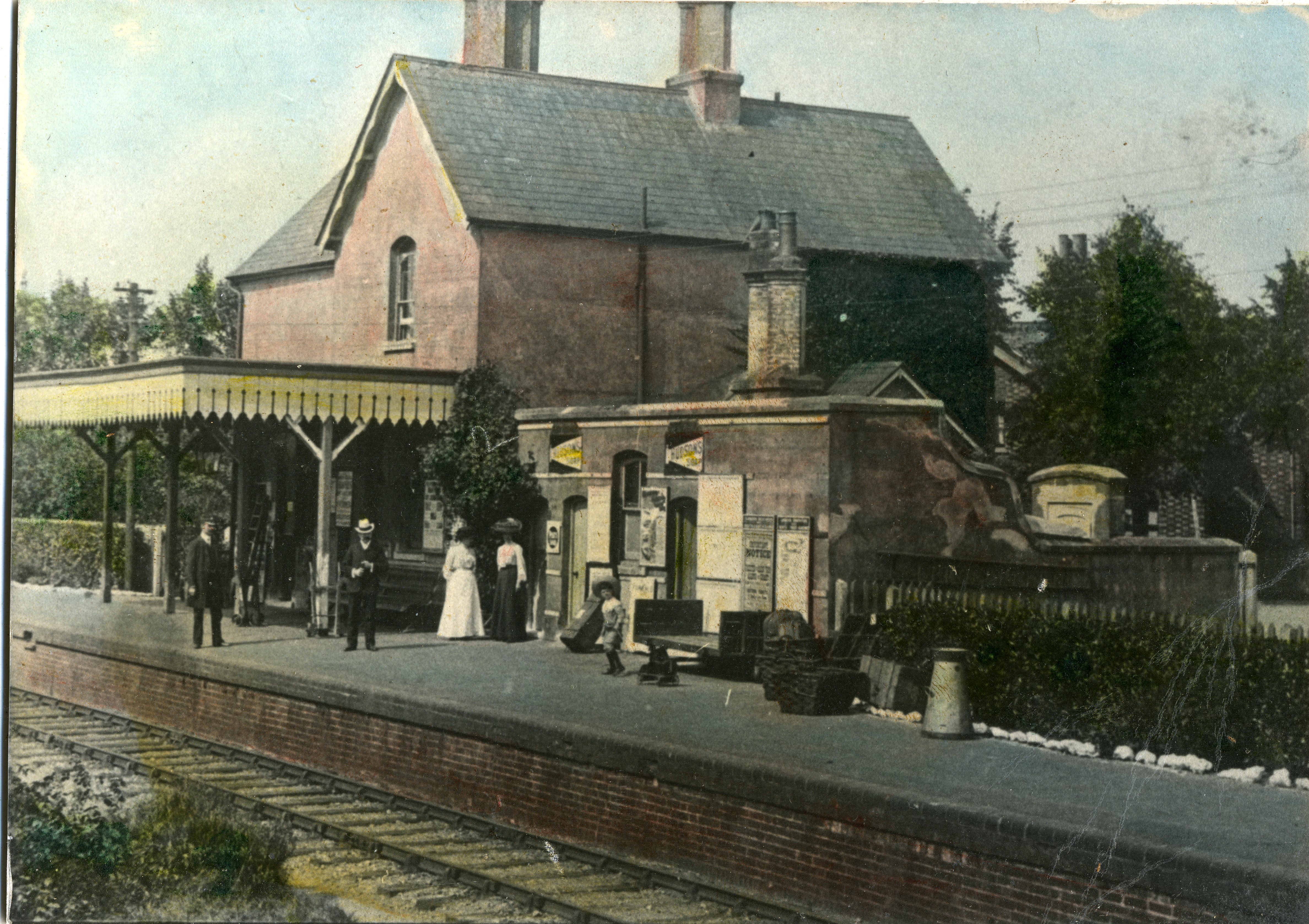 ‘A train just in’, at the Martlet Hotel, opened before the railway, offered to let in 1864, first named Travellers’ Inn or Railway Inn, depending on source. ‘Martlet’ must certainly refer to James Braby’s arms, Sussex martlets, as he had it built. The fly proprieter, George Standing lived across the road at Dale Cottage. Probable Edwardian photo.