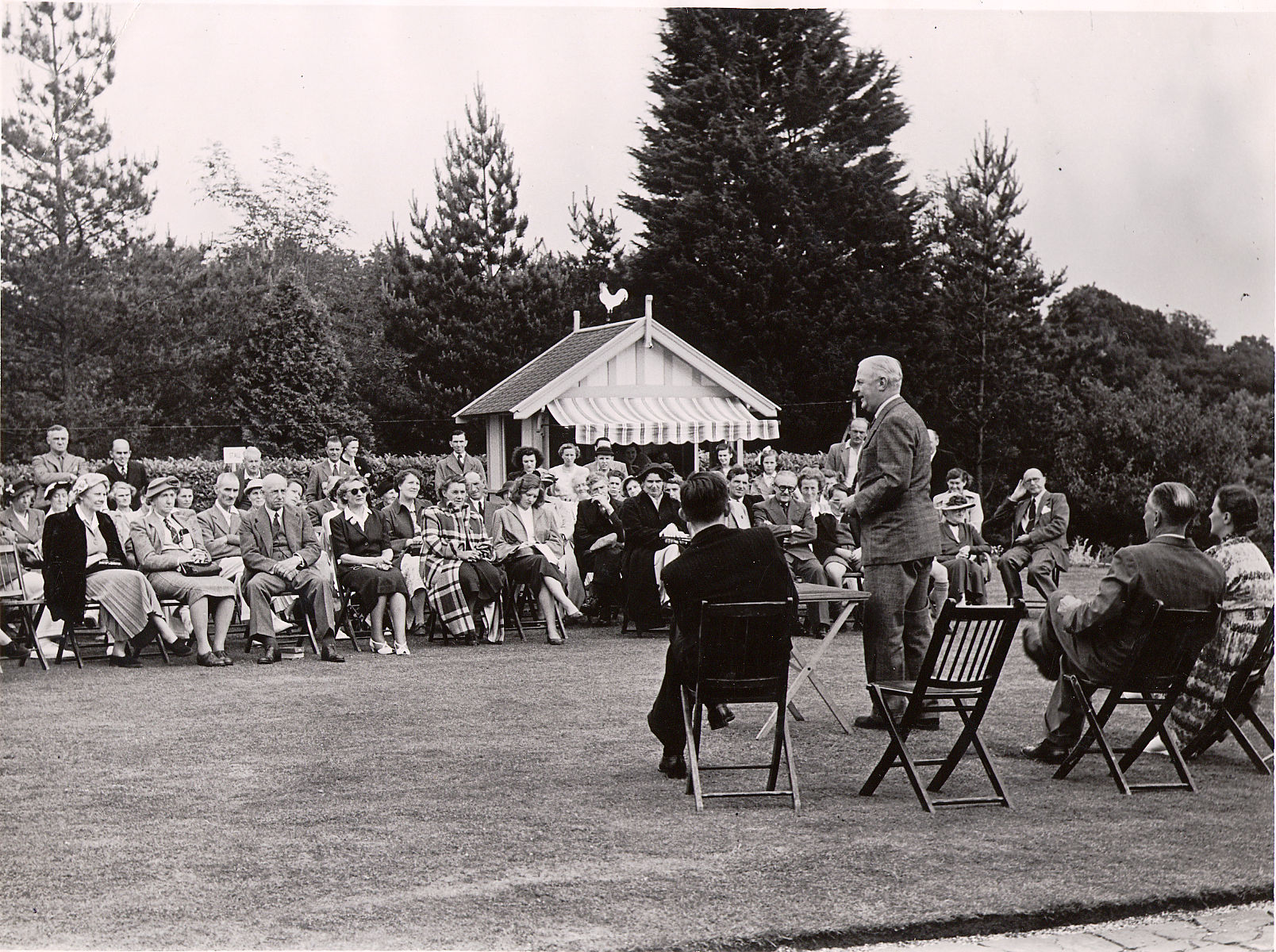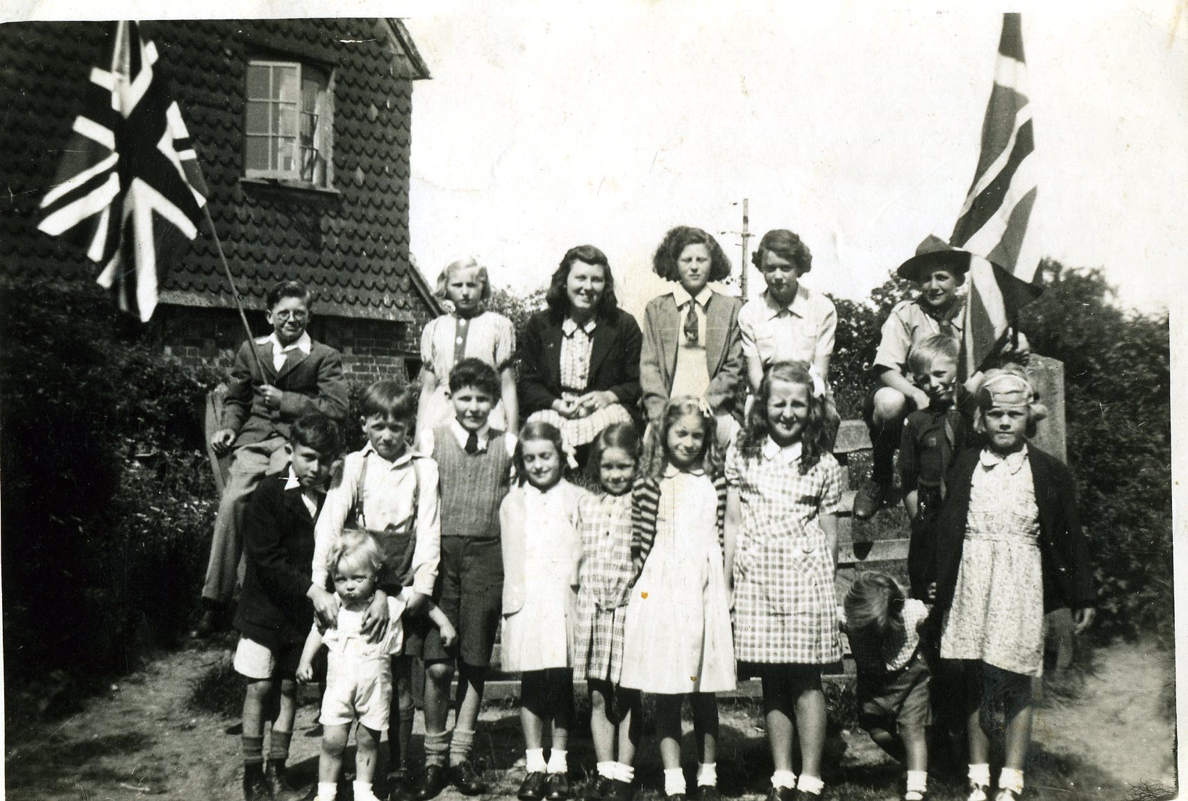 Rudgwick Women’s Institute outside the Jubilee Hall, 1949. Many but not all names have been put to these faces An old folk’s tea party at Windacres, 1951. A number of these people have been identified 1952, another old folks tea party at Windacres Col Frederick Gough MP for Horsham addresses Rudgwick Conservatives at Windacres, 1952. Windacres was then owned by NF Gossage Esq Rudgwick Silver Band first played in 1861, set up by Rev Thurlow of Baynards. Most of the band enlisted in the Great War. Re-established by G C Barker of Gaskyns. Met in a band room behind Willow Cottage, Church St. John, William, Harold, & Charlie Tate were successive bandmasters. The end came in the late 1940s Cricket has been played in Rudgwick since at least 1775, but the earliest photo of players is from this newspaper cutting dated 24 Sep 1933, when the match arranged with PGH Fender’s XI was washed out, and the players retreated to the Queen’s Head for a sing-song The earliest team photo of Rudgwick CC is the 1951 team On 23 May 1959, Rudgwick under GW Humphrey played Rev David Sheppard’s XI but lost the match despite good bowling by NC Naumann. Sheppard scored 77 1965, Rudgwick v The President’s XI Rudgwick FC, the 1920 XI, for which we have all names, including Anson Crouch, captain, front centre, and numerous non-players. Seated, third from right Albert King, club sec, re-started football after the war. left Rudgwick the next year. Photo possibly in his honour. Possible start date for the club: before 1908. Photo by Rudgwick-born FJ Waller of Horsham The 1933-4 football team was a winning team! All names known; captain T Hurst. Rudgwick wore red/black stripes By the 1950s, both football and cricket had use of the new King George’s Field, Bucks Green, identifiable by the houses behind. Can you name any players? 1981 Cranleigh Hospital Cup team, first colour photo. Post-war strip no longer striped. Village Hall in background Rudgwick Girl Guides off to camp at Rudgwick Station, 1927 Rudgwick Scouts at Clymping beach in 1946. Wartime tank traps proved irresistable! A larger group, same year, same place. Can you name anyone? 1955, Rudgwick Scouts reach semi-finals of the soapbox derby in Morecambe, driver of ‘The Gnat’ Ean Clarke. Others were Ken Richards and Mel Reynolds (scoutmasters Messrs Matthews and Durrant) A Wanford (Bucks Green) group celebrate VE Day, 1945 Pennthorpe School 1956, under 60 pupils, all boys, most boarders; Joint Principals Herbert & Sidney Braby founded the school in Chislehurst, and evacuated to Rudgwick. also pictured is ‘Chalky White, soon to be Headmaster (see comments below) Rudgwick School, pre-1900, headmaster Charles Woods (1877-1912), right Rudgwick School 1934, headmaster Alfred Bacon (1917-1948), left Rudgwick School, senior girls, 1946. Children spent their whole school life in the village school in Bucks Green Rudgwick School football team, 1948-9 Rudgwick School fieldwork, possibly Lynwick, 1940s Rudgwick School, serving up wartime dinner Miss Tuff’s infants met at the Social Club, Loxwood Rd, as school numbers increased, c1949 Rudgwick school staff, 1952, headmaster Mr Denton centre (1948-54), Miss Tuff 2nd right 1964/5, at the very end of the old school’s history, headmaster Mr Guest (1954-1970s), Bob Burse 2nd right bottom row. Rudgwick School centenary photo, at the new school in Tates Way, 1980. The new school opened on 5 June 1972.