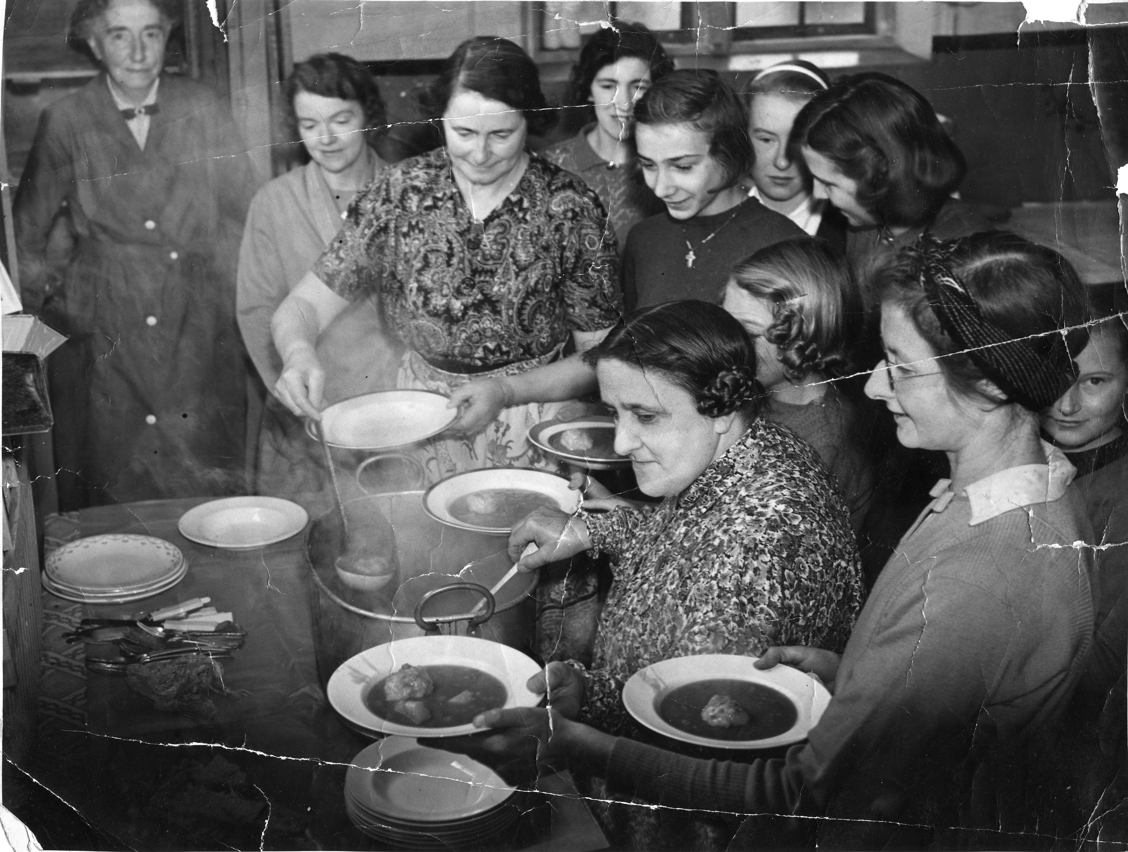 Peter, we have these names on the reverse of the photo: back, Mrs Long, Mrs McCawley [I think, difficult to read], Mrs Waller; front, Mr Hunter, Miss Tuff, Mr Denton, Mrs Smith, Mrs Crawford. Is Mrs Long left or right, please?